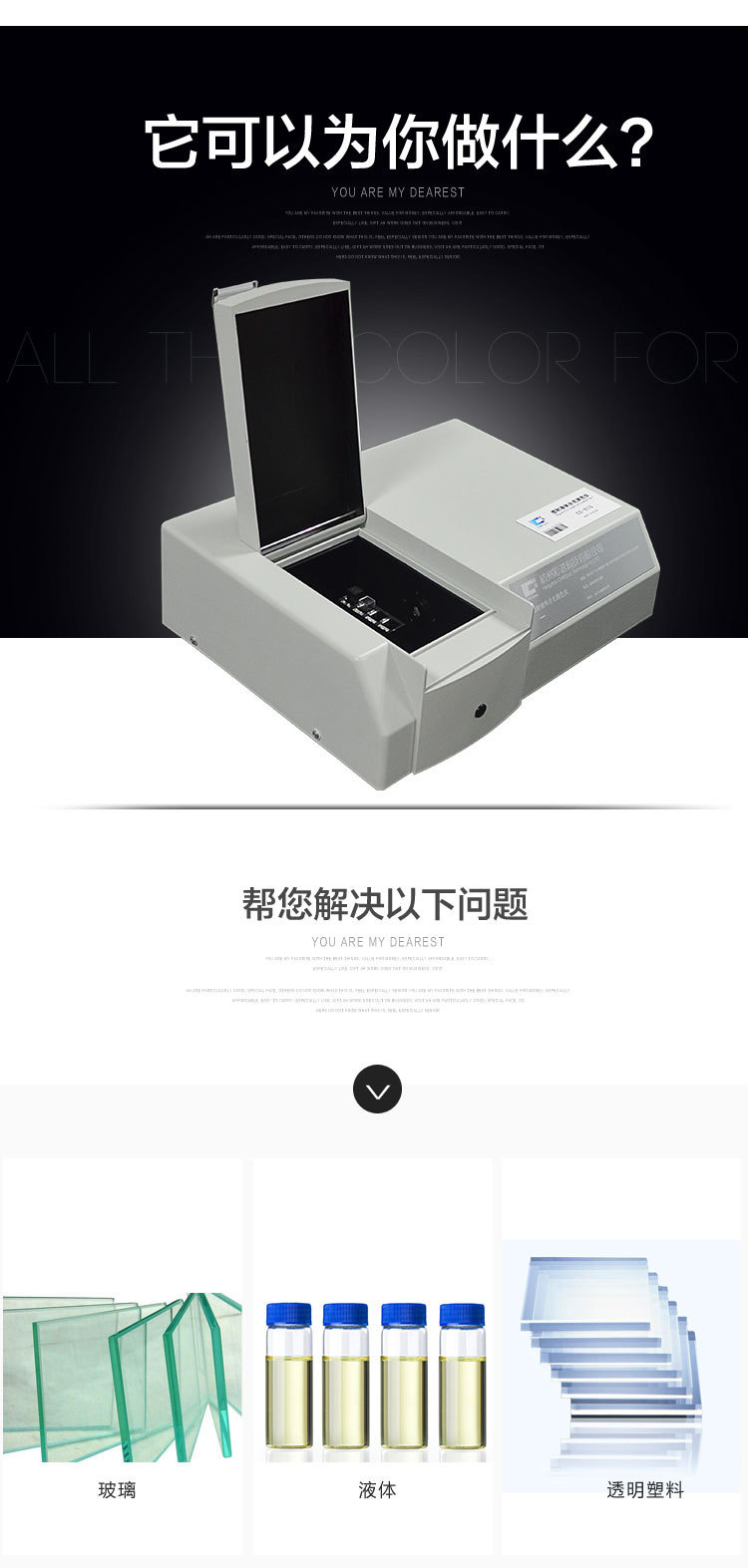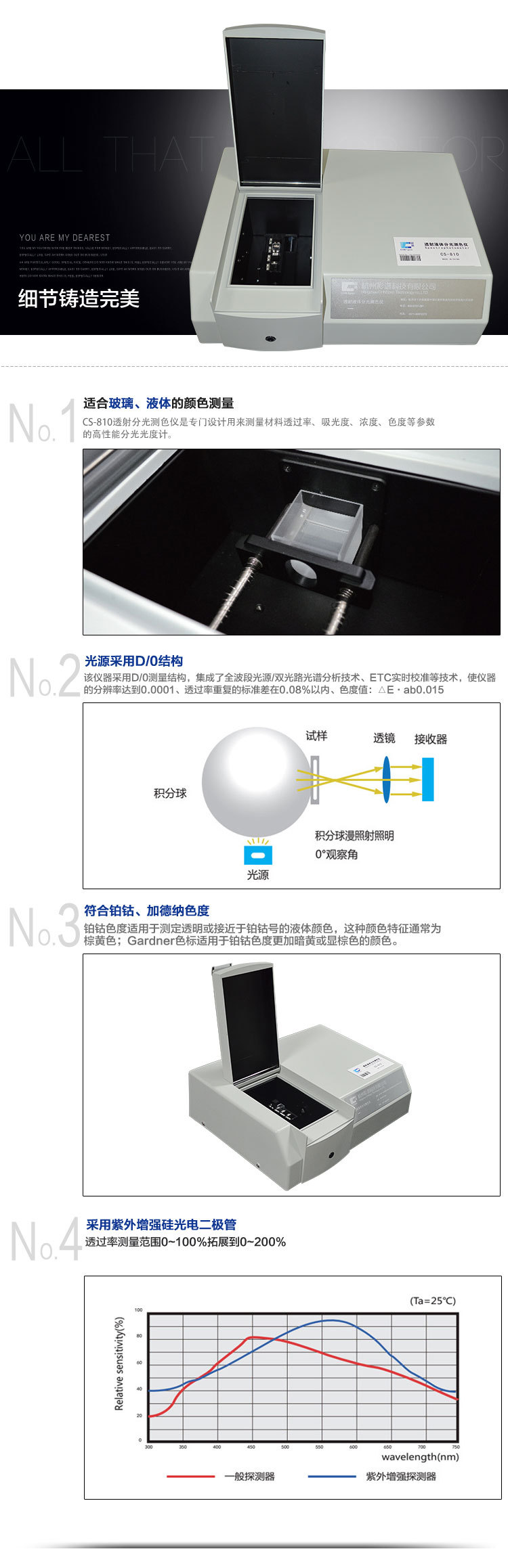 專門設計用來測量液體透過率、吸光度、濃度、色度等參數的高性能分光儀??蓽y水質鉑鈷色,適合玻璃、液體顏色測量