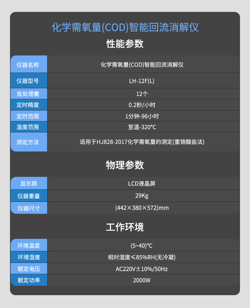 連華科技LH-12F(L)化學(xué)需氧量(COD)智能回流消解儀