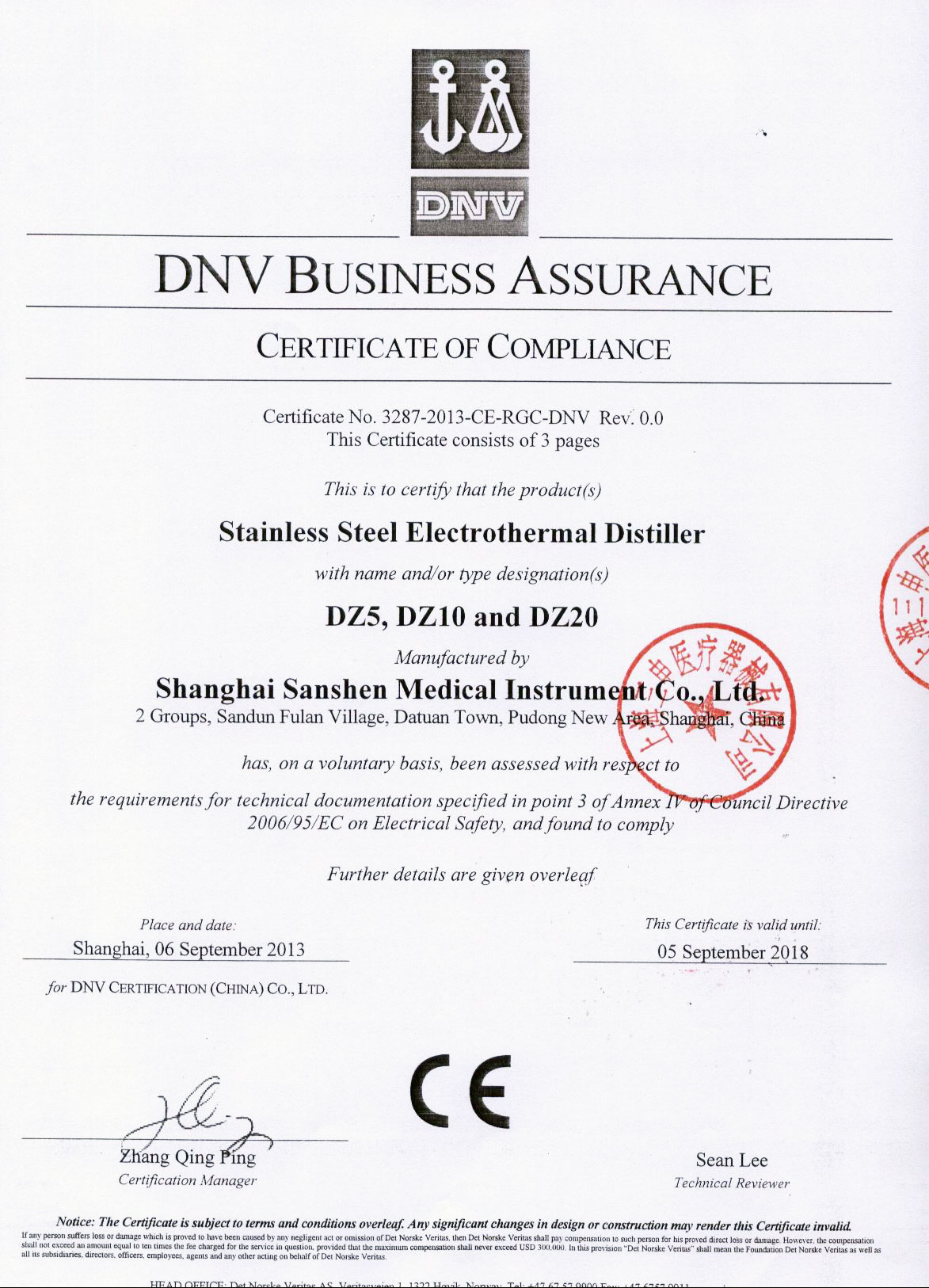 上海三申蒸餾水器(斷水自控型)DZ5Z/DZ10Z/DZ20Z