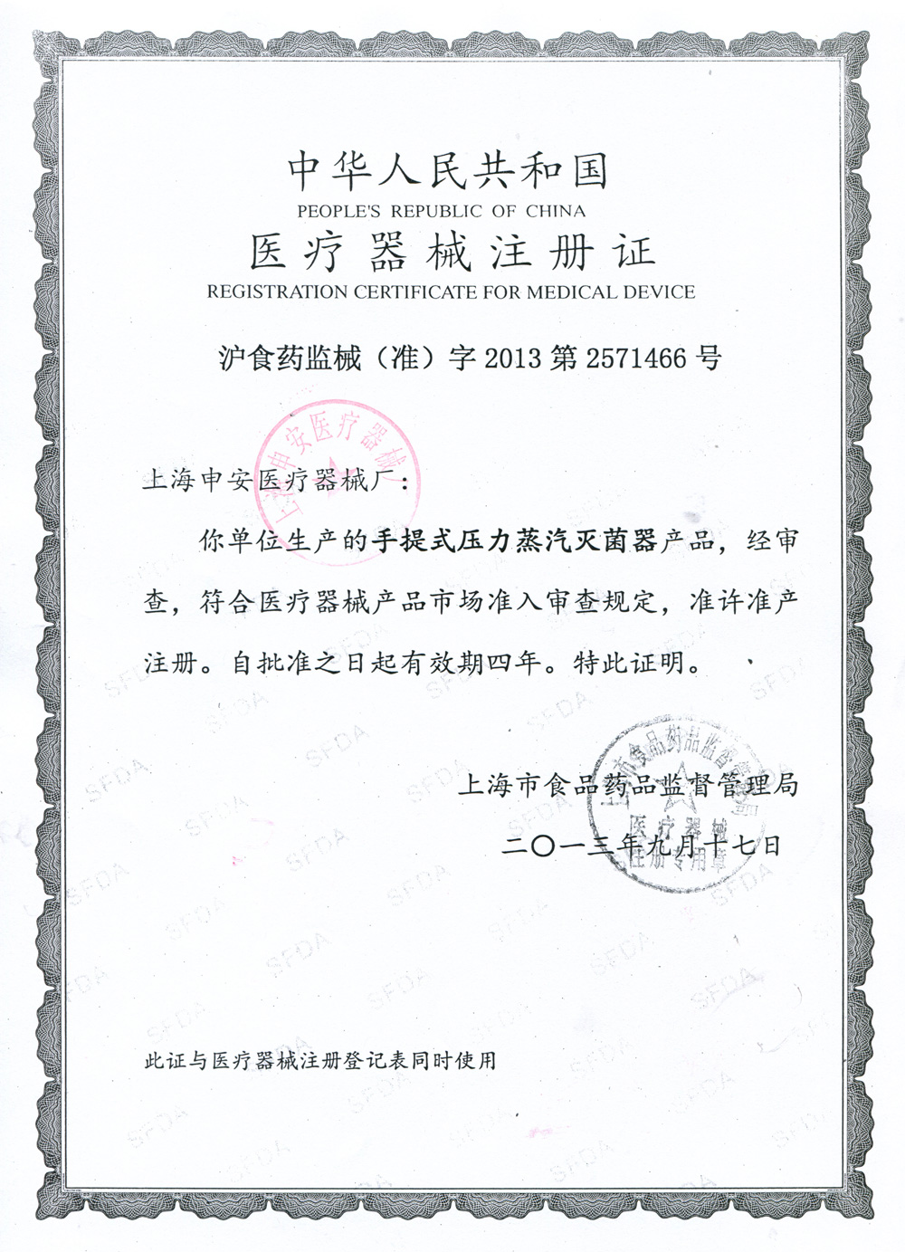 滬食藥監械(準)字2013第2571466號